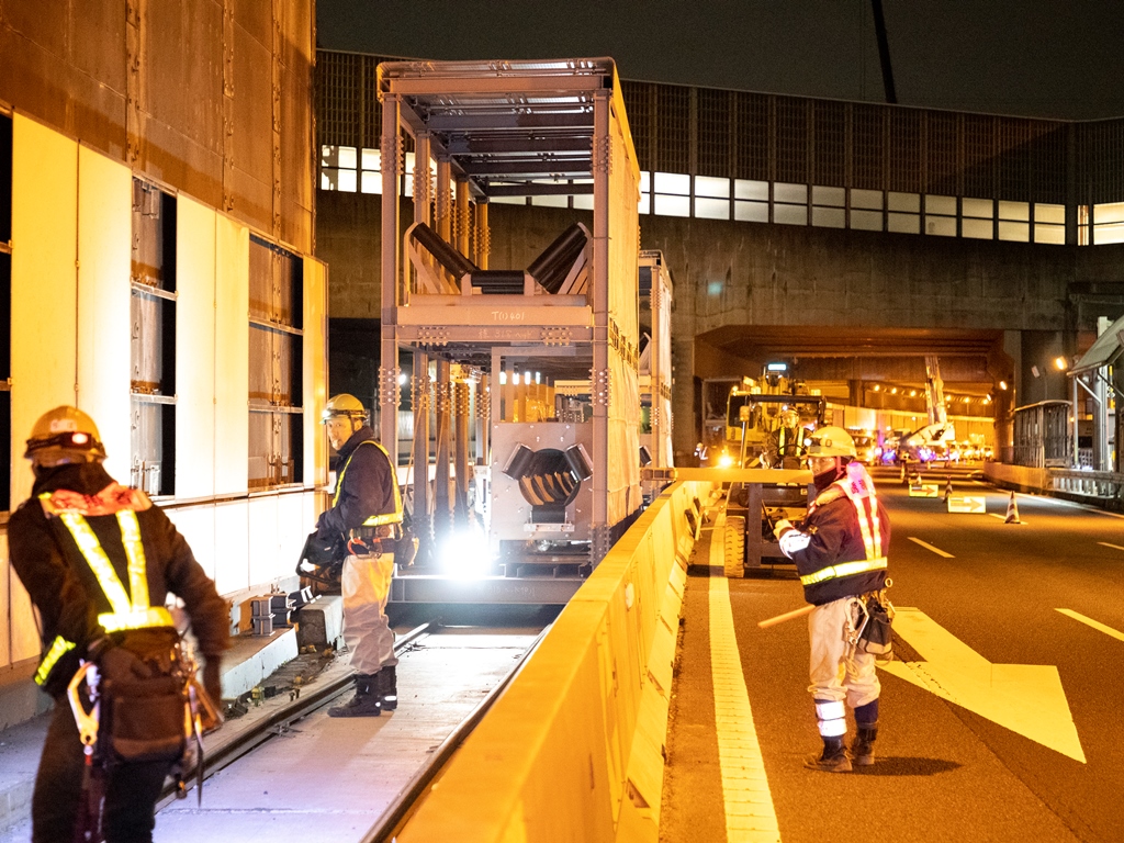 土砂運搬ベルコン施工状況@本線トンネル(南行)(大泉JCT)